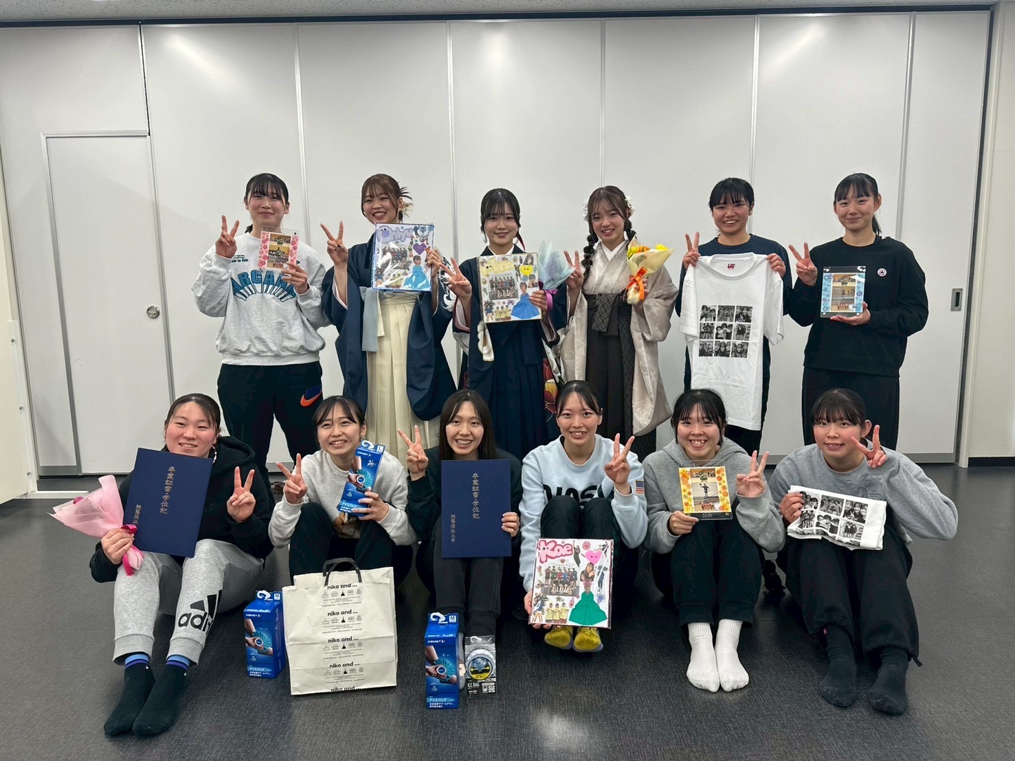 そして先日、卒業式が行われました!4年生は3人しかいない中で私たちのことを引っ張ってくれて、心から尊敬出来る先輩たちでした!そんな先輩方に感謝を伝えるにはいい結果を残すしかないので、1日1日の練習を大切に取り組んでいきたいです!改めて先輩方、ご卒業おめでとうございます!